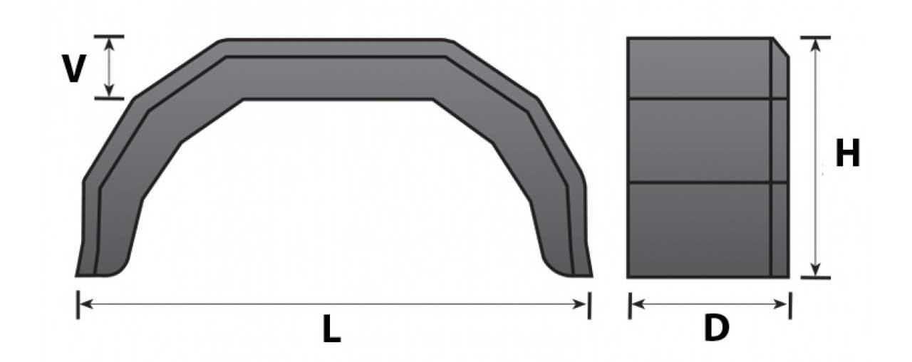 Drawing dimensions L = 610mm, D = 170mm, H = 240mm, V = 65mm